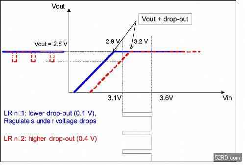 為了有助于SoC設(shè)計者比較兩個線性穩(wěn)壓器,必須給出最大電流時的壓降值。這樣能確保線性穩(wěn)壓器得到正確的校準,以便驅(qū)動指定負載,并在所有工作條件下能正確抑制來自輸入電壓的噪聲。