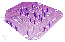 隨著當(dāng)今集成電路對(duì)供電穩(wěn)定性的要求,印制板設(shè)計(jì)工程師需要關(guān)注于低電壓、低翻轉(zhuǎn)門(mén)限與大電流、多層長(zhǎng)線供電所造成的壓降。利用CST電磁工作室的穩(wěn)恒電流求解器可以仿真整個(gè)PCB的電壓分布,如圖15所示: