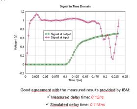 除了CST印制板工作室,CST微波工作室也可以進(jìn)行印制板的信號(hào)完整性分析。CST微波工作室是通用的高頻無(wú)源仿真軟件,集時(shí)域和頻域算法為一體包含七種全波算法:時(shí)域有限積分、頻域有限積分、頻域有限元、模式降階法、矩量法、多層快速多極子和本征模法。圖5給出了CST仿真IBM復(fù)雜PCB并進(jìn)行信號(hào)完整性分析的考題,仿真得到的電壓延時(shí)與實(shí)測(cè)只差0.002ns。[page]