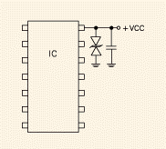 ESD對地線層的直接放電可能損壞敏感電路。在使用TVS二極管的同時還要使用一個或多個高頻旁路電容器,這些電容器放置在易損元件的電源和地之間。旁路電容減少了電荷注入,保持了電源與接地端口的電壓差。