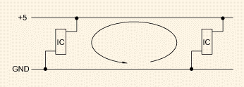 電流通過感應(yīng)進入到電路環(huán)路,這些環(huán)路是封閉的,并具有變化的磁通量。電流的幅度與環(huán)的面積成正比。較大的環(huán)路包含有較多的磁通量,因而在電路中感應(yīng)出較強的電流。因此,必須減少環(huán)路面積。