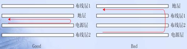 時鐘頻率超過5MHz,或信號上升時間小于5ns時,為了使信號回路面積能夠得到很好的控制,一般需要使用多層板設計。在設計多層板時應注意如下幾點原則: