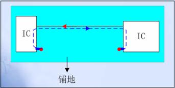 圖5 雙層板的關鍵信號線地投影平面上大面積鋪地