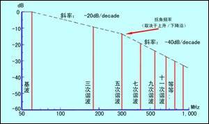 圖1 上升/下降時(shí)間為1ns的理想60MHz方波的頻譜