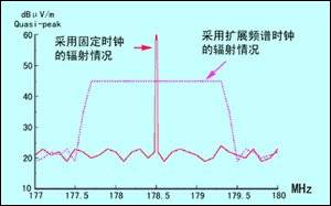 圖2 時(shí)鐘擴(kuò)頻導(dǎo)致的輻射降低