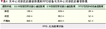 表4給出了由傳播模型理論計算得到的在不同環境下距離RFID設備3 m處使用無中心對講機的最大通信距離以及在完全保證無中心對講機的最大通信距離時RFID設備與無中心對講機的兼容距離。