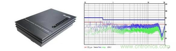 雖然電源自身電磁干擾方面投入了很大的設(shè)計(jì)成本,也符合承諾的各項(xiàng)指標(biāo)要求,但是電源在市場應(yīng)用方面還是難免出現(xiàn)電磁干擾超標(biāo)的問題;此時(shí),很多的設(shè)計(jì)工程師都會(huì)認(rèn)為問題的根源在于電源,這方面的認(rèn)識(shí)其實(shí)是有誤區(qū)的,因?yàn)殡姶鸥蓴_傳導(dǎo)騷擾測試項(xiàng)目,主要是針對電源端口的,那么電源端口就成了他的傳輸路逕,所有的電磁干擾都會(huì)經(jīng)過電源端口到達(dá)被測設(shè)備,但是測試設(shè)備測試到的電磁干擾除了來自電源本身外,主要的部分還包括整機(jī)中的其他部分產(chǎn)生的電磁干擾,以及設(shè)備內(nèi)部寄生參數(shù)的諧振產(chǎn)生的電磁干擾,這一類電磁干擾會(huì)通過電源端口耦合到測試設(shè)備,電源內(nèi)部的濾波器是無法進(jìn)行實(shí)現(xiàn)對這部分電磁干擾進(jìn)行濾波,電源應(yīng)用環(huán)境千差萬別,所有電源設(shè)計(jì)濾波器部分都是以解決自身的干擾為首要考慮條件的同時(shí),濾波器衰減特性及頻譜特性盡量會(huì)預(yù)留最大的余量,但不可能兼容所有應(yīng)用場合;那么這就要求我們的整機(jī)設(shè)計(jì)人員在設(shè)計(jì)電源前端時(shí)候,一定要按照電源廠家推薦的應(yīng)用電路進(jìn)行設(shè)計(jì),例如:LH15產(chǎn)品應(yīng)用過程中出現(xiàn)EMI超標(biāo)問題(見下圖)。