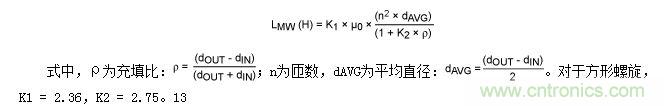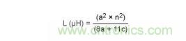 式中,a為線圈的平均半徑,單位為英寸;n為匝數(shù);c為線圈磁芯的寬度(rOUTER - rINNER),單位為英寸。當(dāng)線圈的c > 0.2a時(shí)11,該計(jì)算方法的精度在5%之內(nèi)。