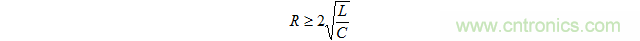 為消除來自脈沖波形(如數字信號)的正脈沖信號、負脈沖信號或振鈴,使用滿足以下公式的電阻器來實現LCR串聯諧振電路的無振蕩條件。