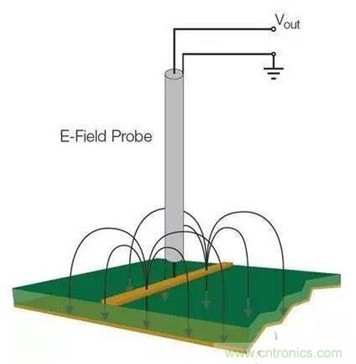 在實際應用中,E場探針最適合查找非常小的區域,并識別具有相對高電壓的源以及沒有端接的源,比如: