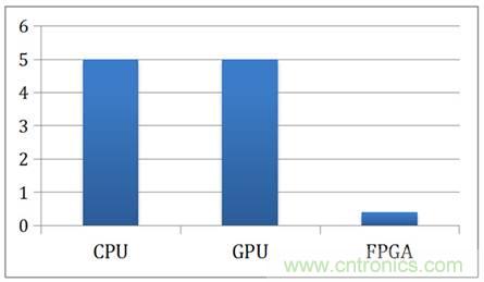 FPGA相對于CPU與GPU有明顯的能耗優勢,主要有兩個原因。首先,在FPGA中沒有Instruction Fetch與Instruction Decode,在Intel的CPU里面,由于使用的是CISC架構,僅僅Decoder就占整個芯片能耗的50%;在GPU里面,Fetch與Decode也消耗了10%~20%的能源。其次,FPGA的主頻比CPU與GPU低很多,通常CPU與GPU都在1GHz到3GHz之間,而FPGA的主頻一般在500MHz以下。如此大的頻率差使得FPGA消耗的能源遠低于CPU與GPU。