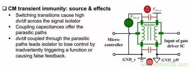 同時選隔離芯片的時候也需要注意一個參數叫做CM transient immunity(肯定會給的),這個參數最好大于開關瞬間,橋臂中點電平的變化速率。光耦隔離這個參數一般在30kV/us,磁耦在35kV/us,電容耦合在50kV/us(是不是絕望了,都比氮化鎵低,硅器件一般在10kV/us,Sic 30kV/us)。