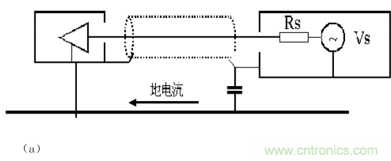 圖b所示的是一個系統受到地環路電流的干擾。如果將設備的安全地斷開,地環路就被切斷,可以解決地環路電流干擾。但是出于安全的考慮,機箱必須接到安全地上。所以,對于頻率較高的地環路電流,地線是斷開的,而對于50Hz的交流電,機箱都是可靠接地的。