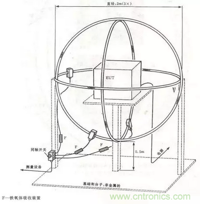 輻射發(fā)射測(cè)試時(shí),測(cè)量天線接收到的騷擾強(qiáng)場(chǎng)包括兩個(gè)部分,一部分是EUT內(nèi)部的導(dǎo)線和電路直接通過(guò)機(jī)箱殼體的縫隙向外的輻射,稱殼體輻射,另一部分是由外接電纜引出的共模電流輻射。替代法測(cè)試的目的是僅僅測(cè)試EUT的殼體輻射,所以要求拆除所有可以拆卸的電纜,不能拆卸的電纜上要加鐵氧體磁環(huán),并放在不會(huì)影響測(cè)量結(jié)果的位置上。