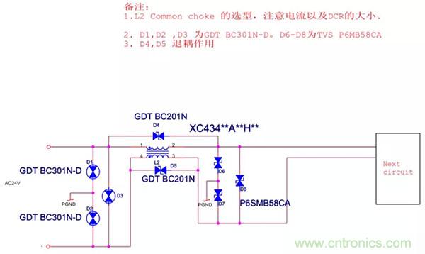 1、AC24V接口EMC設計標準電路