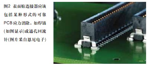 所有表面貼連接器必須備有某種形式的應(yīng)力消除。一些連接器公司通過使用螺絲釘把電路板或附件鎖到面板上,以達(dá)到應(yīng)力消除。雖然這些概念可能會增加機(jī)械強(qiáng)度,一些解決方案甚至不需要二次裝配或人工的交涉就能夠提供必要且可靠的電路板支持力。