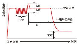 焊嘴(例:接觸到有水的海綿)有溫度變化,可自動解除休眠功能。(在休眠功能的溫度(SST)的溫度下降到100℃以下的時候,此方法不能解除休眠功能。)