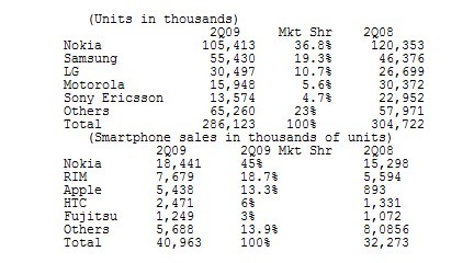 Gartner稱截至6月底的上一季度全球手機銷量為2.86億部,相比去年減少6.1%,相比上一季度減少9.4%——這是手機業歷史上最大幅度的下滑。
