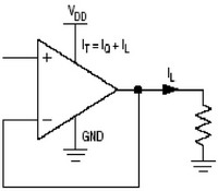 圖1單電源運算放大器,帶有一個對地的電阻負載