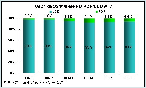 - 2009年上半40英寸以上等離子在大屏幕FHD市場占有率6.0%,同比增加4.0%