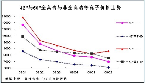 奧維咨詢(AVC)數(shù)據(jù)顯示:2009年上半年40英寸以上全高清等離子彩電在等離子整體市場占有率為24.6%,比去年同期增加了20.6%。大屏幕全高清等離子市場的高速增長,得益于其產(chǎn)品價格的下降和相對于非全高清產(chǎn)品的價格差距越來越小,替代不可避免。