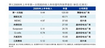 全球第一大薄膜電池廠商第一太陽能(First Solar)以耀眼的財務表現平息了外界對薄膜電池“泡沫”的這一爭議。在經歷了2009年一季度的短暫環比下滑之后,第一太陽能二季度的營業收入達5.26億美元,同比增97%,環比增26%,同時,不僅市場份額有所提升,并且市值在全球光伏廠家中躍居首位(表1)。在晶體硅電池生產成本銳減的背景下,薄膜電池非但沒有失去市場份額,反而憑借不斷改進的技術,頂住組件單價下滑的壓力,將單位生產成本進一步壓縮。