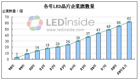 - 至2009年8月現存LED芯片生產企業達62個