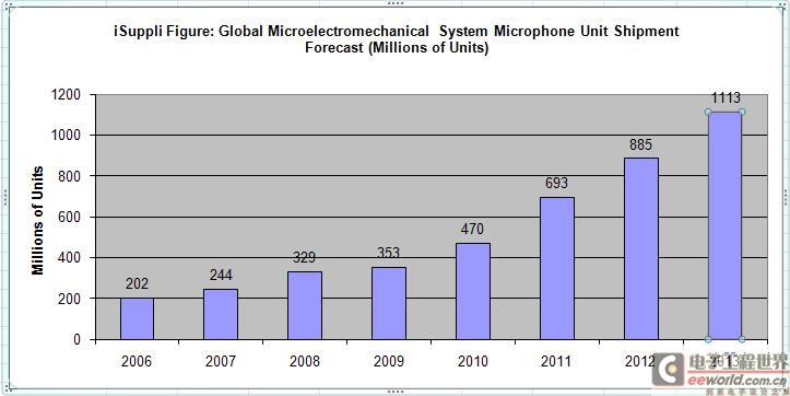 據(jù)iSuppli預估,盡管歷經(jīng)2009年的衰退,但在移動手持裝置與其它類似應用的強力驅動下,2008至2013年,全球微機電系統(tǒng)(MEMS)麥克風仍預計將成長三倍以上。
