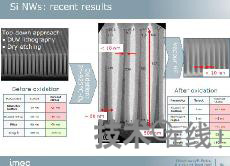 目前,IMEC正在嘗試試制適于太陽能電池的硅納米線。要實現(xiàn)1.7~1.8eV的帶隙,硅納米線的直徑需要降至2~4nm。為形成這種極細的硅納米線,IMEC采用了為制造新一代半導體而開發(fā)的EUV曝光。