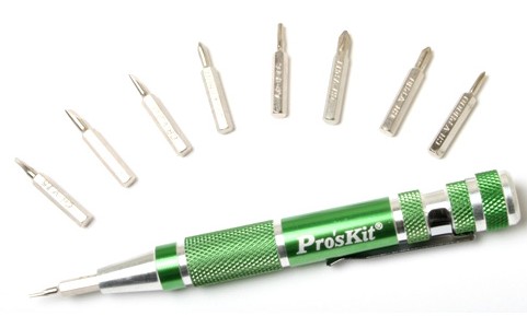 寶工實業SD-9814 鋁合金精密起子組包含了鋁合金筆形手柄及9支鉻釩鋼材質的螺絲起子頭︰十字 2.0 , 3.0mm, 一字PH000, PH00, PH0, PH1, 及星形T4, T5,T6, 滿足使用者各種不同的需求應用,例如眼鏡,首飾,手表,工藝品及一般的手機維修均適用。