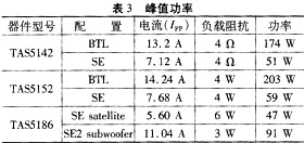 TexasInstruments還提供具有數字增益控制功能的RMS功率測量方式,使THD+N≤10%。利用TI公司的TAS5508或TAS5086型調制器,可以實現數字增益。THD+N為10%時的平均功率要高于正常FTC的THD+N<1%時的額定功率。表2列出了THD+N為10%時的平均功率。