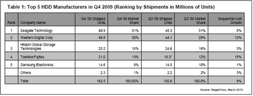 - 希捷在2010年第一季度將保持榜首位置