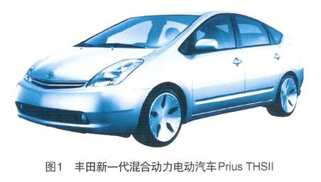 以作為混合動力電動汽車研發(fā)前沿的豐田汽車公司為例,所開發(fā)的混合動力電動汽車已達(dá)到實用化水平,自1997年所推出的世界上第一款批量生產(chǎn)的混合動力電動汽車Prius開始,其后又在2002年推出了混合動力面包車,該車混合動力系統(tǒng)采用了世紀(jì)首次批量生產(chǎn)的電動四輪驅(qū)動及四輪驅(qū)動力/制動力綜合控制系統(tǒng)。2003年,豐田又推出了新一代Prius,也被稱為“新時代豐田混合動力系統(tǒng)——THSⅡ”(見圖1),節(jié)能效果可達(dá)到100km油耗不足3L。從2004年開始,豐田公司向歐洲市場推出了一款新的LexusRX型豪華混合動力轎車。豐田公司計劃2012年全部采用汽油電力混合發(fā)動機,以提高燃油經(jīng)濟(jì)性和降低排放污染。