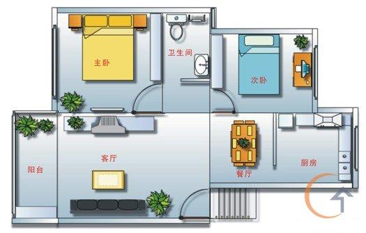 本項目為一套2室2廳,室內建筑格局為:客廳、餐廳、廚房、次臥、主臥、衛生間、陽臺,如圖1所示: