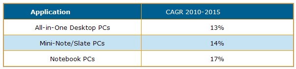 表1:2010-2015按應(yīng)用別PC年復(fù)合成長率