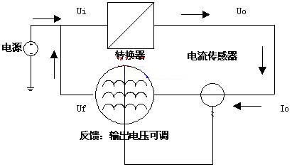 能量反饋部分和需要例行試用的轉換器組成一個能量循環系統,在外電源的激勵下,系統保持額定功率運轉。由功率公式P=U*I,U由例行老化的電源轉換器穩定,要保證該額定功率,就是保證輸出電流I,即能量反饋部分設計成恒流電路,所以系統在額定功率下,保證能量循環穩定工作的等效控制量為需要例行使用的電能轉換器的輸出電流。