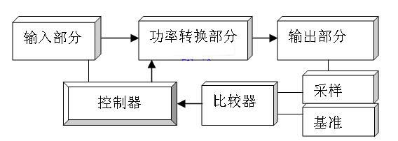 從以上能量反饋系統工作分析可知,能量反饋部分為系統穩定工作提供必要的保證,能量反饋部分組成可由圖5所示,主要包括:輸入部分、功率轉換部分、輸出部分、采樣、基準、比較器和控制器七個組成部分。
