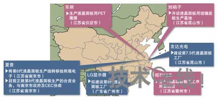 液晶面板廠商與相關部材廠商紛紛進軍中國
