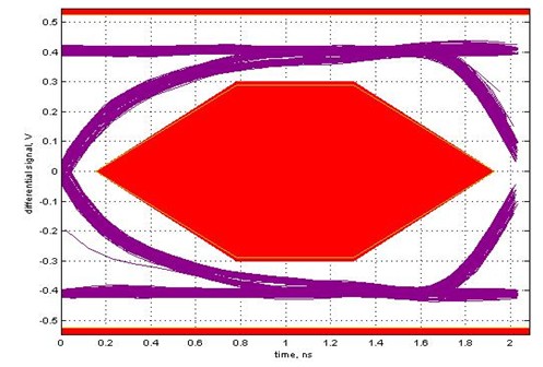 本次測試將主要驗證產品上兩個USB高速主機接口的眼圖。對于USB2.0物理層的眼圖測試,USB IF在USB2.0 SPEC中有著明確的眼圖模板定義如下:
