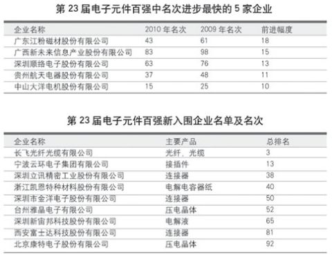 國(guó)際金融危機(jī)造成的企業(yè)經(jīng)營(yíng)上的波動(dòng)反饋到了第22屆、23屆元件百?gòu)?qiáng)的榜單上。在近兩屆的榜單之中,均有20家左右企業(yè)的名次出現(xiàn)了10位以上(含10位)的較大波動(dòng),去年23家,今年20家。據(jù)估計(jì),如果國(guó)際國(guó)內(nèi)的經(jīng)濟(jì)形勢(shì)能保持穩(wěn)定,在未來(lái)一兩年內(nèi),元件百?gòu)?qiáng)榜單中,名次出現(xiàn)大起大落的企業(yè)數(shù)量將會(huì)減少。