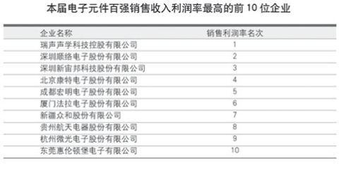 從銷售收入利潤(rùn)率來(lái)看,第23屆元件百?gòu)?qiáng)企業(yè)平均銷售收入利潤(rùn)率雖然比上屆略高,但也僅有7.28%,可見(jiàn),中國(guó)電子元件行業(yè)要擺脫微利狀態(tài)仍有很長(zhǎng)的路要走。瑞聲聲學(xué)科技控股有限公司、深圳順絡(luò)電子股份有限公司、深圳新宙邦科技股份有限公司、北京康特電子股份有限公司、成都宏明電子股份有限公司、廈門(mén)法拉電子股份有限公司分列銷售收入利潤(rùn)率前六位,均超過(guò)20%。其中,瑞聲聲學(xué)科技控股有限公司連續(xù)兩年在銷售收入利潤(rùn)率的排名中位居前兩名,在利潤(rùn)總額的排名中也連續(xù)兩年雄踞前三名,成為整個(gè)電子元件行業(yè)中贏利能力最好的企業(yè)。