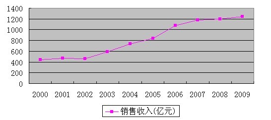 從本屆元件百強的整體銷售收入來看,第23屆元件百強企業(yè)2009年度銷售總額為1244.67億元,同比增長2.36%,同比增長率僅比去年(1.61%)略高,元件百強總體銷售收入增幅已連續(xù)三年低于10%。與第22屆元件百強的銷售總額相比,本屆元件百強的銷售總額增加了4.22%,近10年來,中國電子元件百強的銷售收入總額增長2.84倍,年平均增長率為12.32%(見表3,圖一)。
