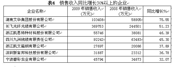 由于2009年受到金融危機的打擊,許多元件百強企業(yè)的生產(chǎn)經(jīng)營受到極大影響。僅有35家企業(yè)的銷售收入增長超過10%,比上屆的41家還少,更遠低于第21屆時的65家。僅有湖南艾華集團股份有限公司、長飛光纖光纜有限公司兩家企業(yè)的09年銷售收入同比增幅超過50%,分別增長了75.55%和51.23%。而上一屆,銷售收入同比增幅超過50%的企業(yè)仍有7家。值得一提的是四川九洲線纜有限責任公司,2008年的銷售收入增長110.16%,2009年的銷售收入再次增長45.30%,兩年間的平均增長率達到74.75%,獲得如此驚人的發(fā)展速度十分難得。