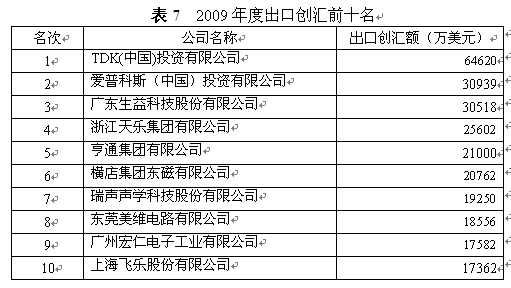 對于中國電子元件行業(yè)的外貿(mào)出口來說,2009年是一個從谷底緩慢爬升的過程。本屆元件百強中出口創(chuàng)匯總額為52.48億美元,同比下降10.38%,占銷售收入總額的28.81%,與上屆元件百強的出口總額相比,下降了9.83%。由于金融危機導致了外需萎縮,而且我國刺激內(nèi)需的各項政策效果明顯,一些元件百強企業(yè)開始更多地關(guān)注國內(nèi)市場,所以本屆元件百強的出口創(chuàng)匯額雖然下滑,但整體銷售收入仍然獲得增長。