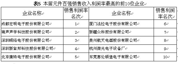 在利潤總額的排名當中,上海飛樂股份有限公司名列第一,亨通集團有限公司、瑞聲聲學科技股份有限公司、永鼎集團有限公司、廣東生益科技股份有限公司分列第二至第五名。