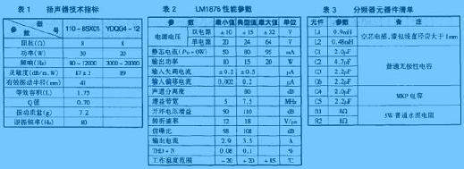 本文介紹的揚聲器均采用防磁揚聲器。高音揚聲器采用上海領(lǐng)先音響儀器公司生產(chǎn)的銀笛牌YDQG4-12型高音揚聲器,該款揚聲器采用了進口絲質(zhì)振膜、磁液冷卻系統(tǒng)、全封閉防磁式磁路等一系列Hi-Fi單元采用的技術(shù),使它比常見的低價高音單元擁有更大的功率承受能力,音質(zhì)更細膩柔美。低音揚聲器則采用了南京電聲股份公司生產(chǎn)的南鯨牌4英寸噴膠紙盆防磁低音揚聲器,型號為110-8SX01。各揚聲器技術(shù)指標如表1所示。