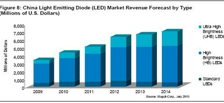 iSuppli公司的樂觀預測顯示,從2010到2012年,每年的LED相關投資將達到35億美元,預示中國LED供應鏈將在2015年以后對全球產業構成威脅。