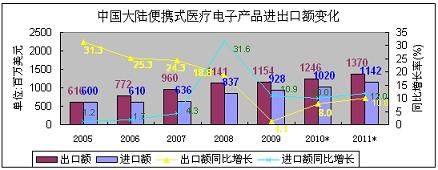 - 便攜式醫(yī)療電子產(chǎn)品出口額略大于進(jìn)口