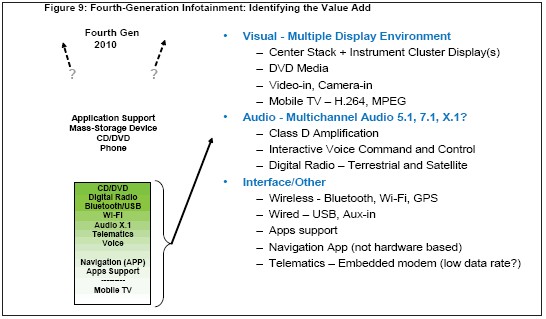 圖9所示為一線供應(yīng)商將來如何需要在第四代汽車信息娛樂架構(gòu)中尋找增加價(jià)值的機(jī)會,以保持競爭優(yōu)勢。