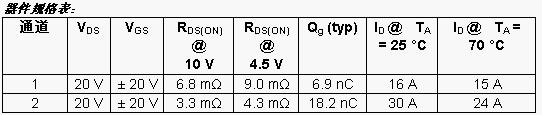 一片PowerPAK 1212-8或SO-8的導通電阻可以分別低至5m?或4m?。然而,SiZ710DT的低邊Channel 2 MOSFET利用了非對稱結構在優化空間上的效果,在10V和4.5V下的導通電阻低至3.3m?和4.3m?,在+25℃和+70℃下的最大電流為30A和24A。另外,高邊Channel 1 MOSFET的導通電阻也有改善,在10V和4.5V下分別為6.8m?和9.0m?。